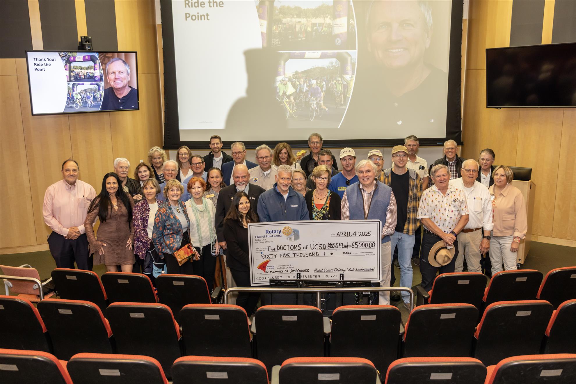 Richard and Gale Krause are pictured here, when an earlier RTP donation was presented to the Moores Cancer Center. Gale's husband Jim Krause was a 35-year PLRC Rotarian−who died of pancreatic cancer in 2012.