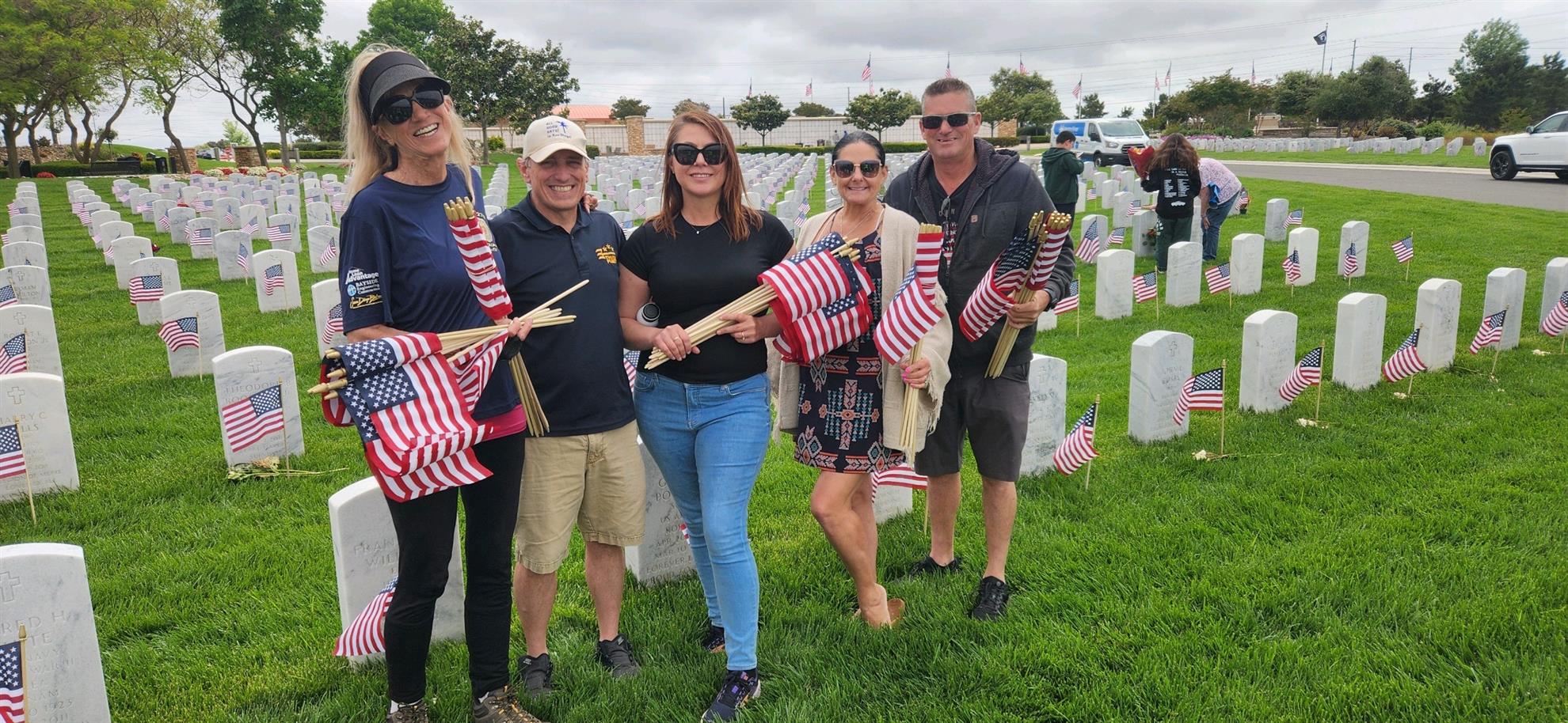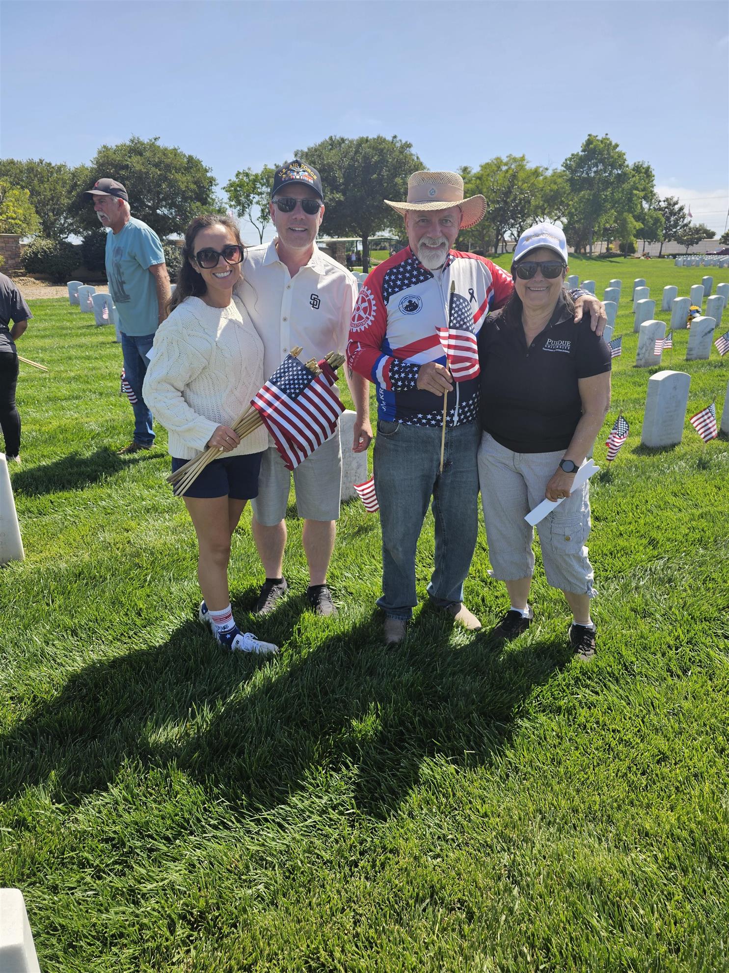 cooperation with the cemetery administration, members of Rotary District 5340 placed a small American flag at every gravesite to honor our fallen heroes. This effort is one for which Miramar National Cemetery has no funding or assignable personnel. The cemetery staff was delighted to welcome Rob, and several