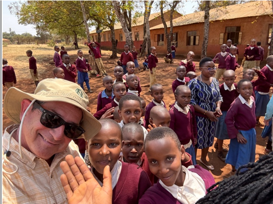 One of the (human) group’s first stops was at the Gyekrum Lambo Primary School in Karatu, Tanzan- ia. Mike’s prior visit to government schools in India in 20__ triggered the recognition that there would be a compelling need for school supplies. As Mike planned it: “I was allowed one more checked bag than I needed. So I reached out to our trip organizer to confirm what I could bring. After spending about $100 at Target for art and school supplies, my additional bag weighed a comfortable 40 pounds. It brought what appeared to be 400 pounds of true joy to those children.”