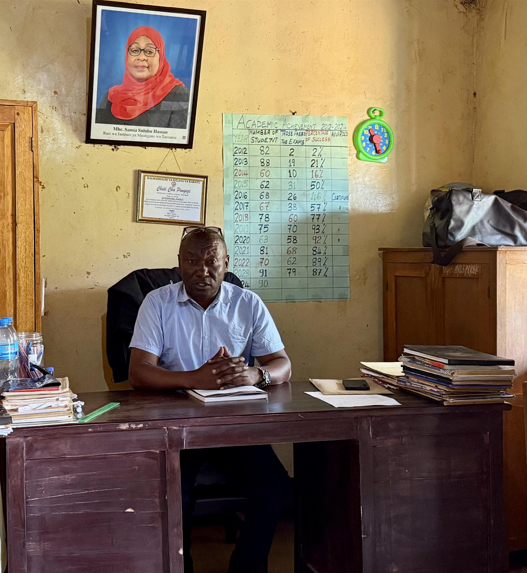 Upon Mike’s return, he received the following message: “I am Samson Gladstone, the headmaster at Gyekrum Lambo Primary School [pictured above right]. I am so grateful to write to you to express our special thanks to you, first for visiting my school, and secondly for bringing us a marvelous bag with much needed school supplies. We appreciated your generosity so much. May God bless you. Thank you, and be blessed.”